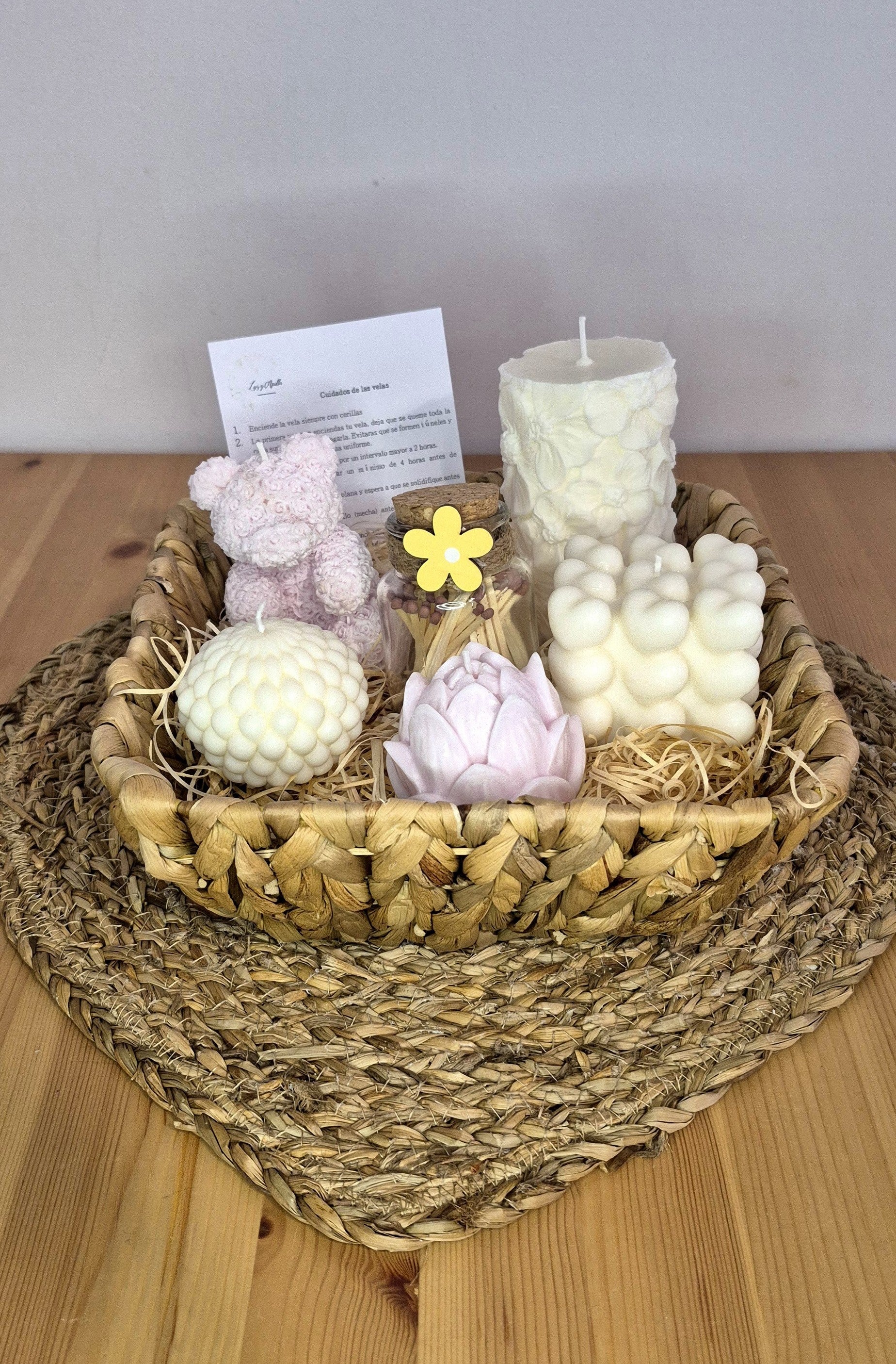 Discover our personalized gift baskets with handcrafted candles, perfect for any special occasion. Each basket is carefully designed with handmade candles infused with natural essences that create unique and inviting atmospheres.