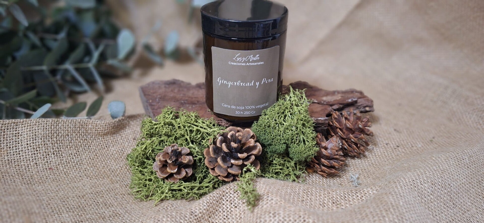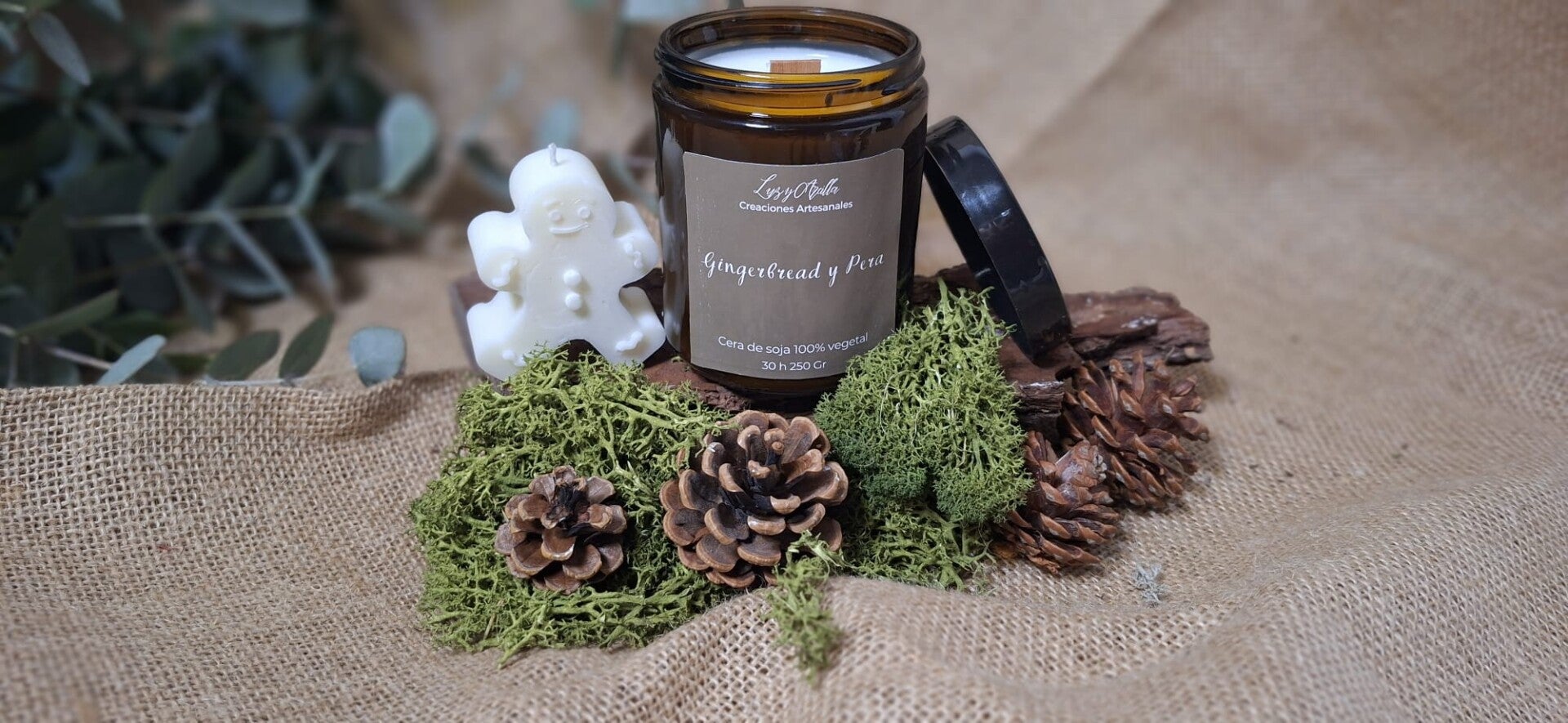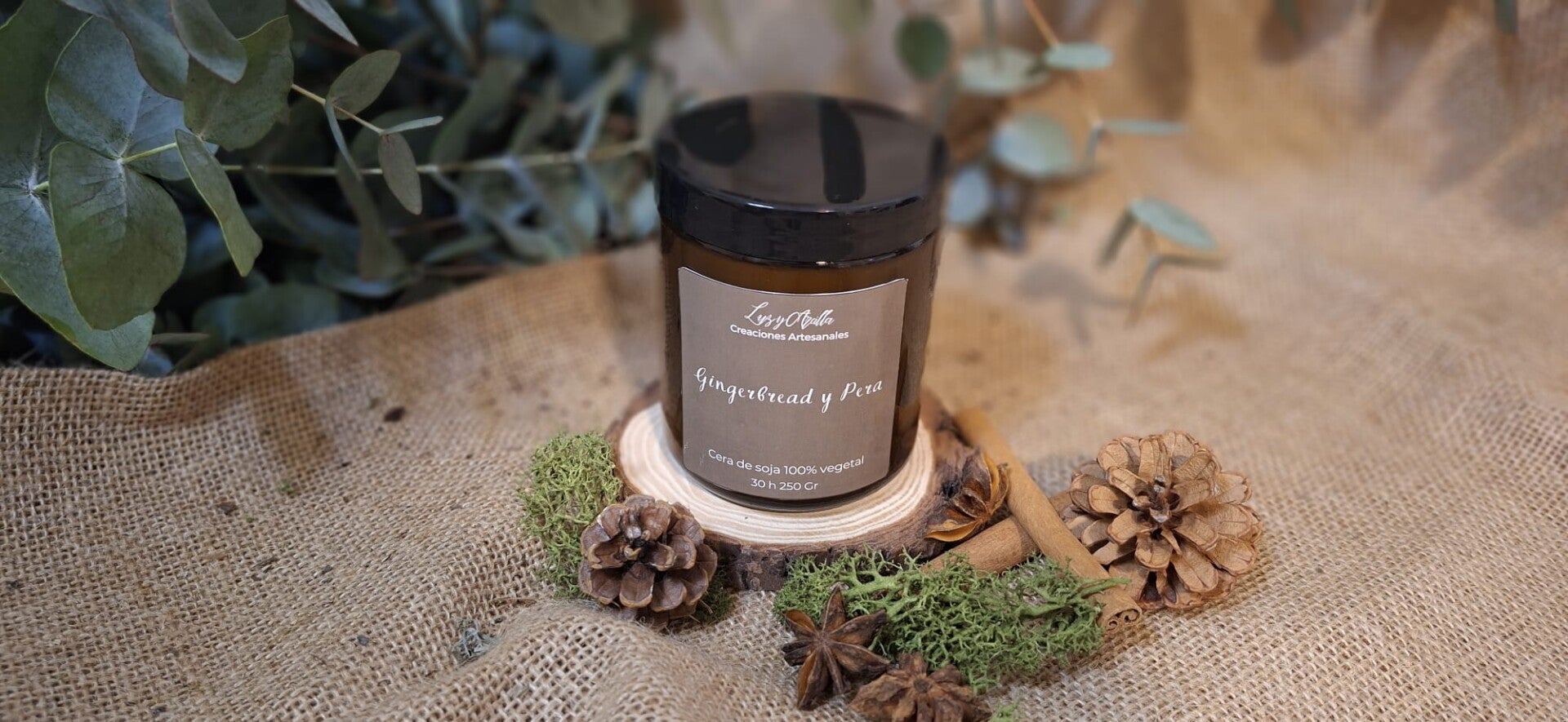 Nuestra vela GingerBread & Pera fusiona el aroma cálido de las clásicas galletas de jengibre con la jugosidad fresca de la pera madura.