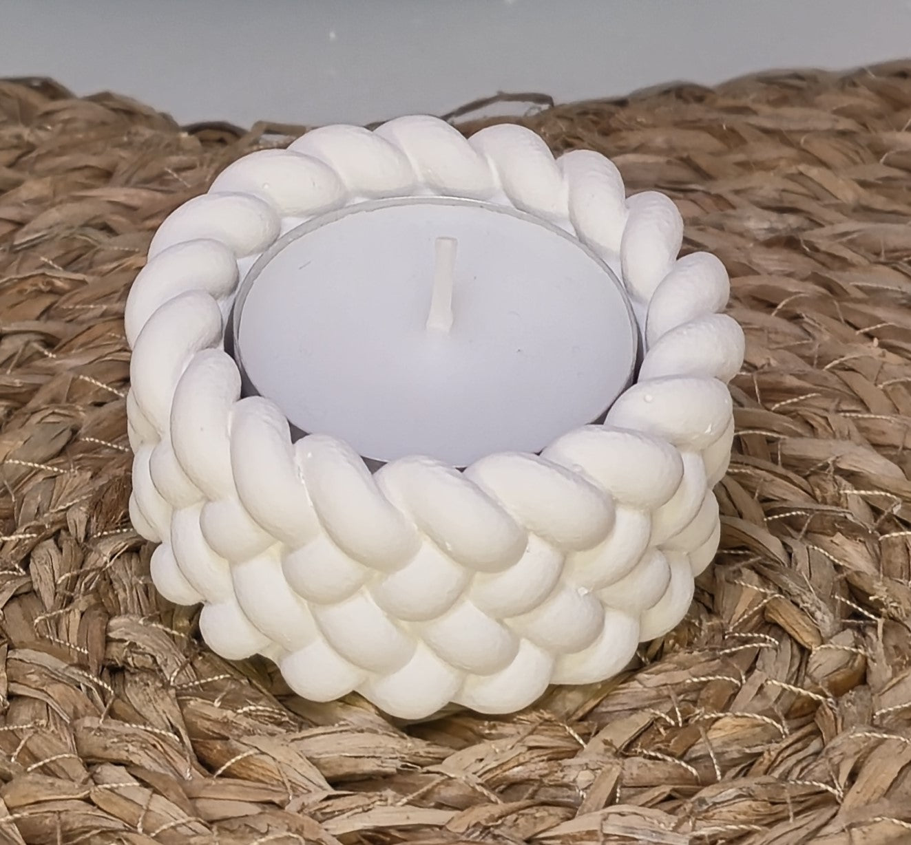 Este portavelas artesanal destaca por su elegante textura trenzada , que recuerda a delicadas escamas. Es una pieza decorativa que aporta luz, estilo y serenidad a cualquier ambiente. Su acabado sutil lo convierte en una elección versátil y atemporal.