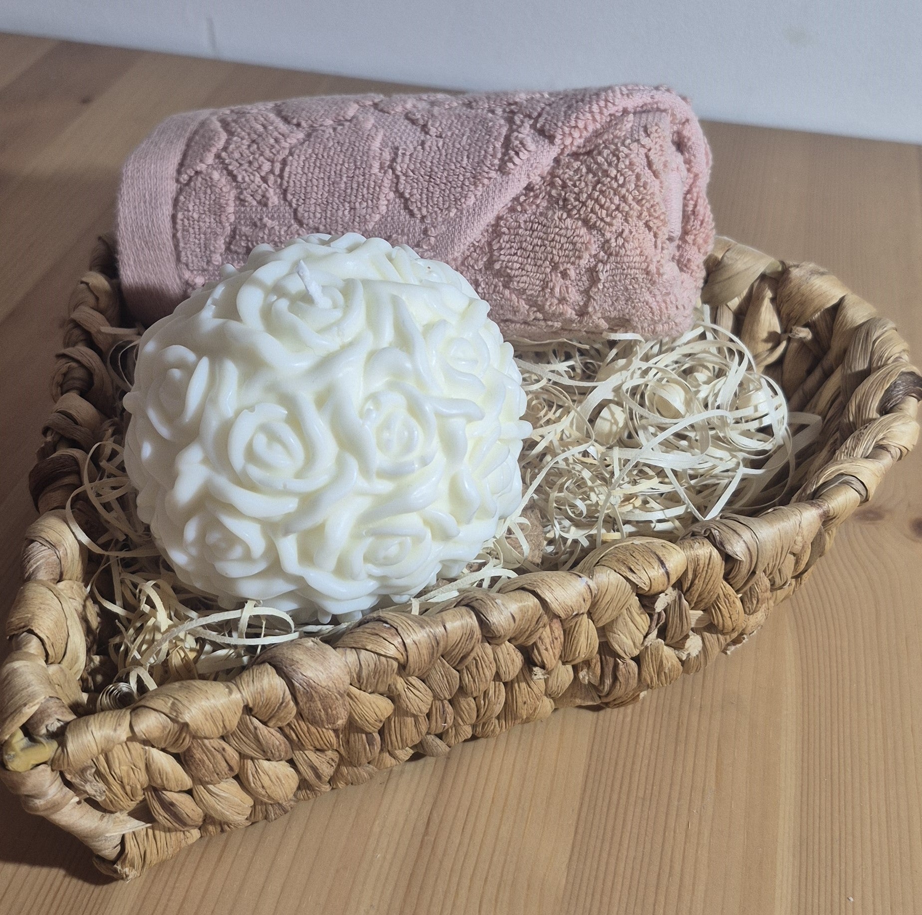 Hermosa vela en forma de esfera de rosas, es el detalle perfecto para sorprender a tus seres queridos o para decorar con un toque romántico y elegante.