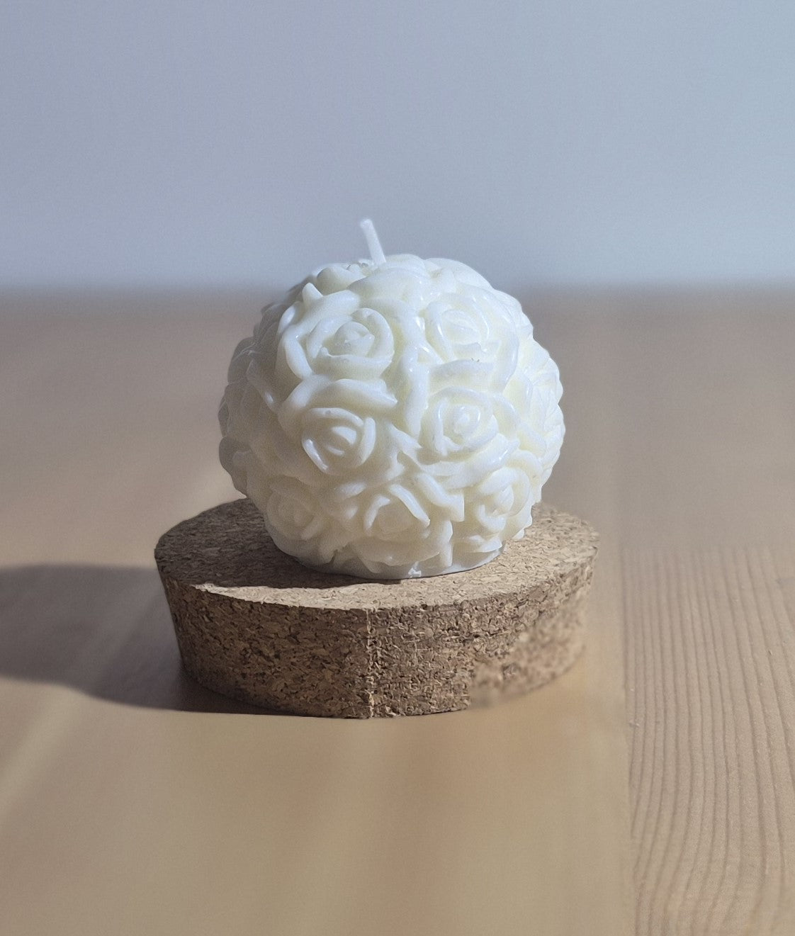 Hermosa vela en forma de esfera de rosas, es el detalle perfecto para sorprender a tus seres queridos o para decorar con un toque romántico y elegante.